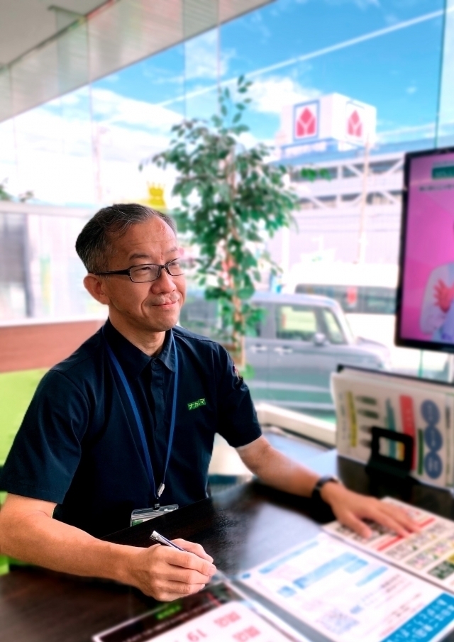 サービスフロントです。お車のアフターケアのオススメや、プランに沿った車検のご提案などお任せ下さい!